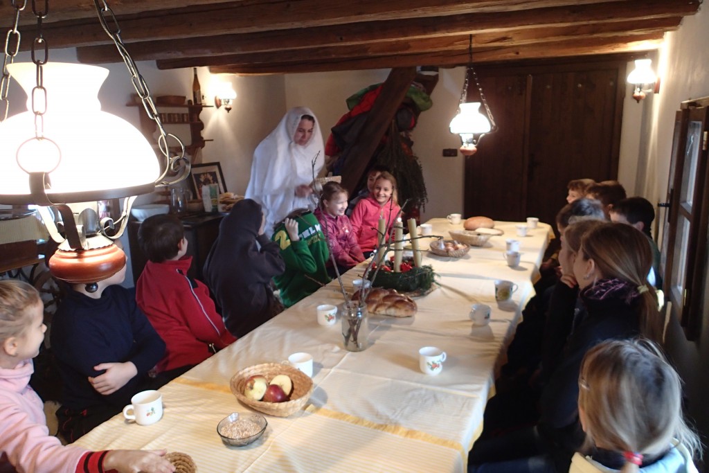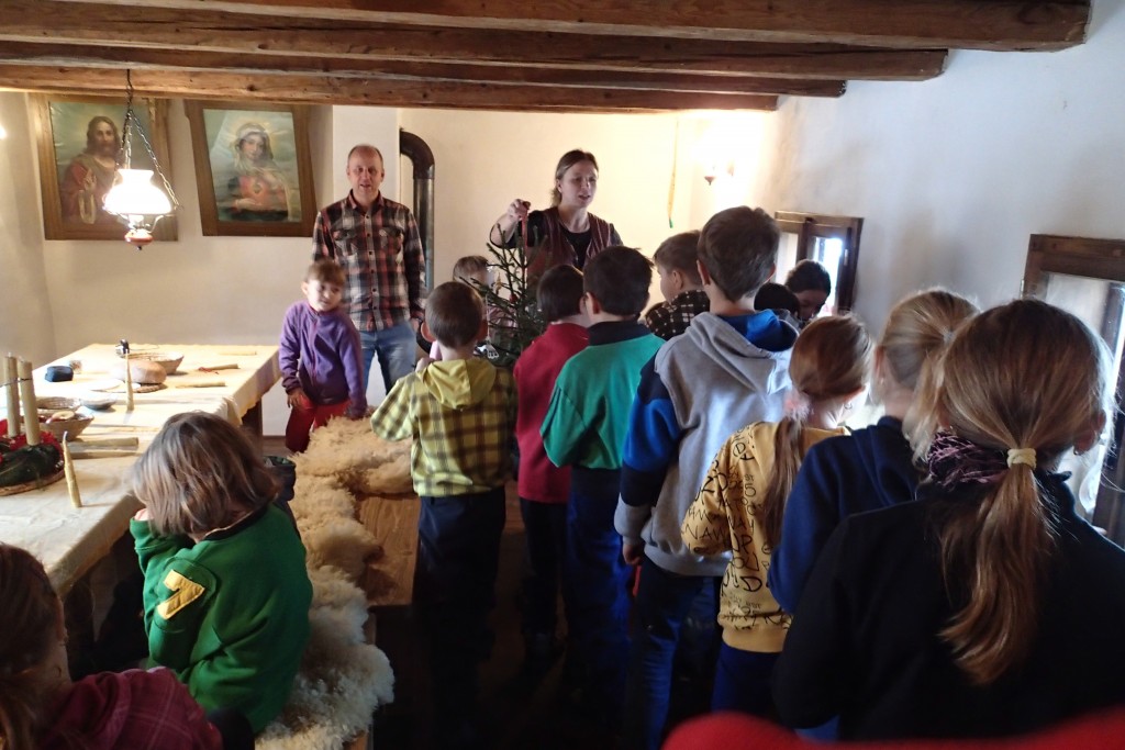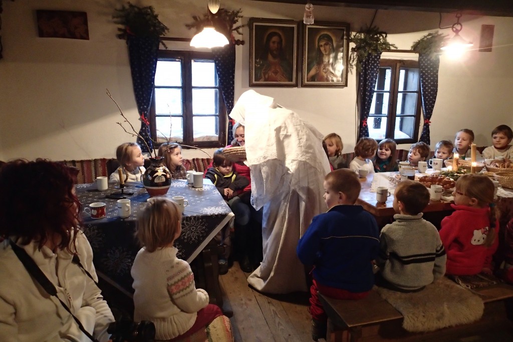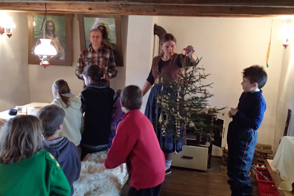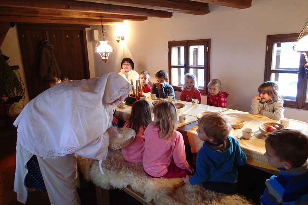 1. 12 – 23.12. 2013 Děti si mohly vyzkoušet všechny zvyky, které se dříve dělaly v každé chaloupce na Valašsku. Rozkrajovaly jablíčka, pouštěly si lodičky, předpovídaly si co je čeká a nemine, cérečky házely papučí a ochutnaly výborný bylinkový čaj a také jsme pekli tradiční vánoční pečivo.