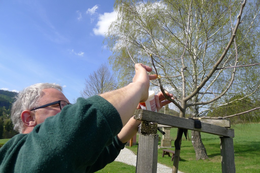V sobotu 25. dubna se na Envi konala druhá část péče o naše ovocné stromy. Pan Josef Ambrůz opět předal návštěvníkům své znalosti a zkušenosti. U kapličky na Cestě zdraví názorně ukázal roubování ovocných stromů a také jak se mají prořezat peckovice, aby nám přinesly co největší úrodu.