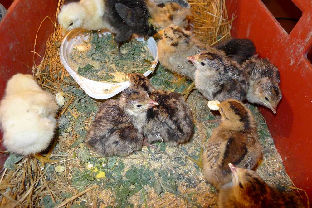 Na přelomu května a června se nám v líhni vyklubalo osm kuřátek a sedm morek (krůťat). Všechna ptačí mláďata se mají čile k světu.