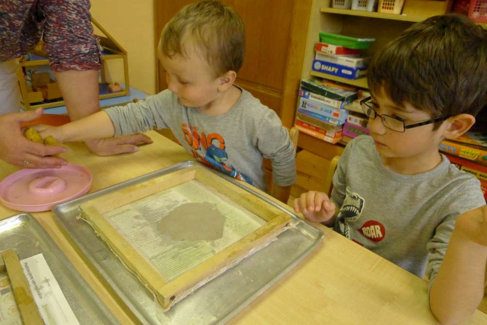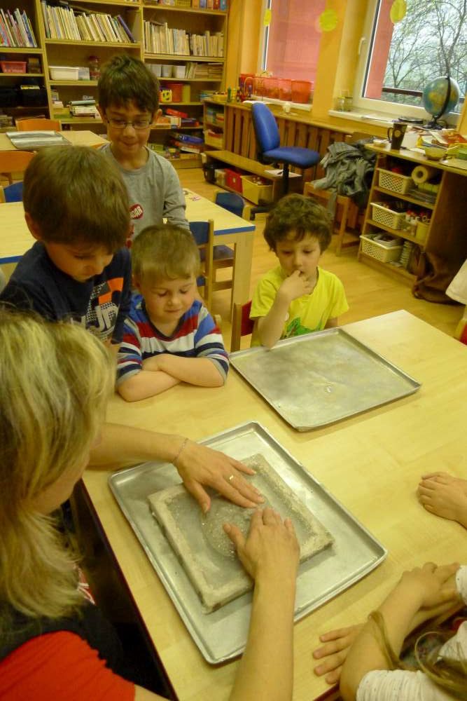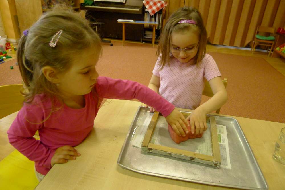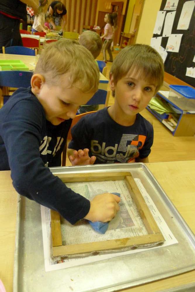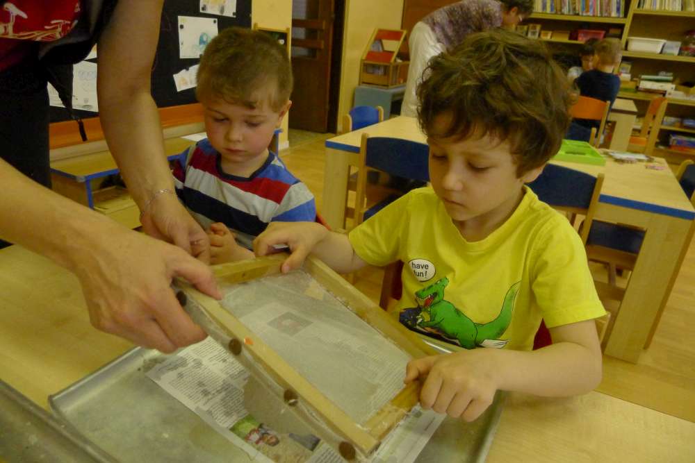 Povídali jsme si, jaký dárek bychom pro naši Zemi mohli připravit. Že naší Zeměkouli nemusíme dávat víno ani čokoládu, ale když se k ní budeme hezky chovat, ona se nám určitě odmění. A také jsme si připomněli, že odpadky nezahazujeme, kde se nám zachce, ale že je potřeba je dávat do koše a ideálně třídit. Dostali jsme se taky k výrobě recyklovaného papíru a každý si mohl svůj papír zkusit udělat. Děti byly šikovné, práce jim šla od ruky. A krásné ruční papíry děti využijí pro přání pro své maminky ke dni matek, který už se blíží.