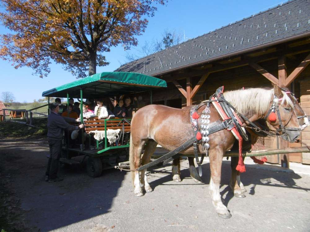 Dnes k nám zavítala 5.třída z Valašských Klobouk. Třída na jaře vyhrála koňský povoz v soutěži Z lavic do přírody. Žáci se dozvěděli jak to funguje u nás na statku a také se svezli vyhraným koňským povozem. Společně si pak opekli špekáčky u táboráku.