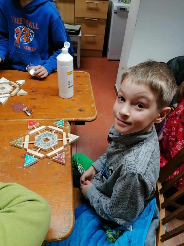 Mladší děti si potom ještě vyrobily dřevěného anděla a starší děti vyráběly dřevěnou vločku❄️.