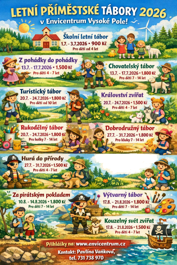 Stejně jako loni, po dohodě s vedením obce Vysoké Pole, mají přednost přihlášení na tábor děti, které mají trvalý pobyt ve Vysokém Poli.